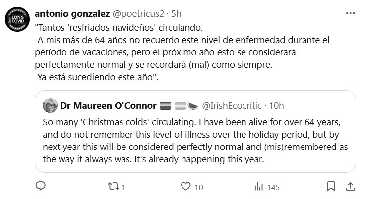 HERVIDOS EN COVID COMO RANAS! «Tantos ‘resfriados navideños’ circulando. A mis más de 64 años no recuerdo este nivel de enfermedad durante el período de vacaciones, pero el próximo año esto se considerará perfectamente normal y se recordará (mal) como siempre. Ya está sucediendo este año»