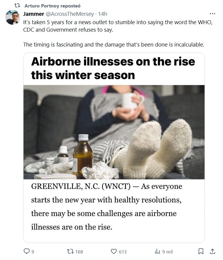 LÉASE COVID (EN INGLÉS) «Las enfermedades transmitidas por el aire aumentan durante esta temporada de invierno» Han tenido que pasar cinco años para que un medio de comunicación se atreviera a decir lo que la OMS, los CDC y el Gobierno se niegan a decir. El momento es fascinante y el daño que se ha causado es incalculable.