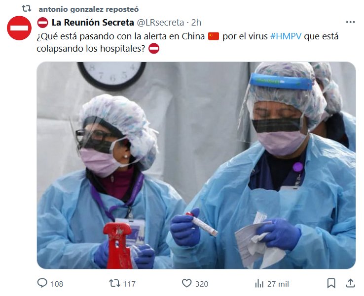 BIOWAR? Antonio González reposteó ⛔️ La Reunión Secreta @LRsecreta · ¿Qué está pasando con la alerta en China 🇨🇳 por el virus #HMPV que está colapsando los hospitales? ⛔️ Posted on enero 4, 2025 por coronado
