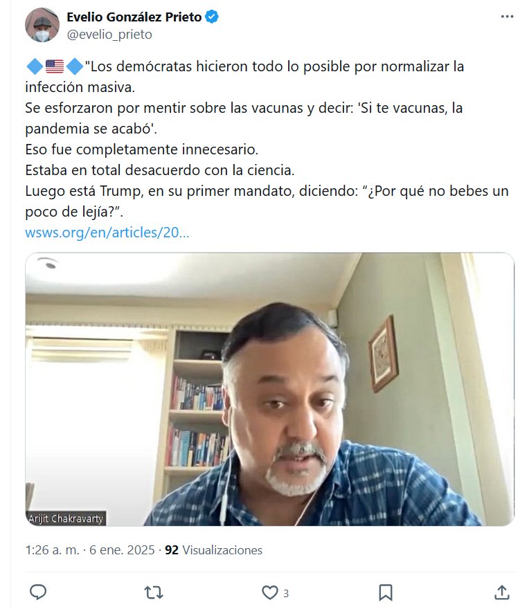 🔷🇺🇸🔷»Los demócratas hicieron todo lo posible por normalizar la infección masiva. Se esforzaron por mentir sobre las vacunas y decir: ‘Si te vacunas, la pandemia se acabó’. Eso fue completamente innecesario. Estaba en total desacuerdo con la ciencia. Luego está Trump, en su primer mandato, diciendo: “¿Por qué no bebes un poco de lejía?”