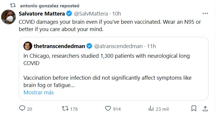 EN INGLÉS El COVID daña el cerebro incluso si te has vacunado. Usa una N95 o una mascarilla mejor si te preocupa tu mente Posted on enero 8, 2025 por coronado https://x.com/atranscendedman/status/1876796816445845771