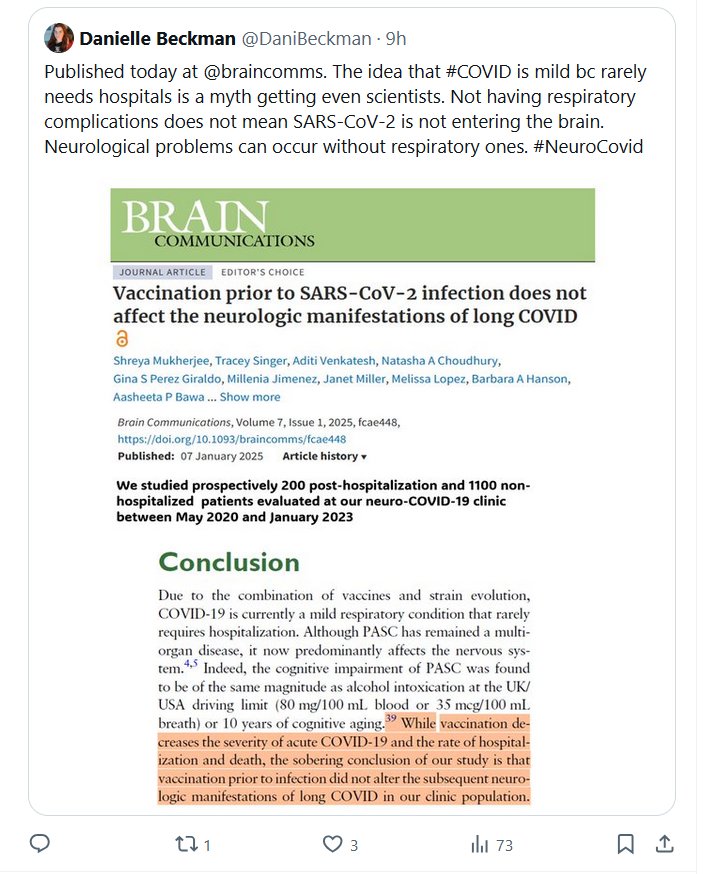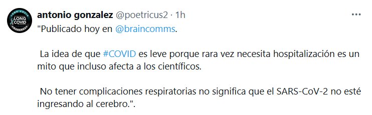 MITOS ENTRE CIENTÍFICOS! «Publicado hoy en @braincomms . La idea de que #COVID es leve porque rara vez necesita hospitalización es un mito que incluso afecta a los científicos. No tener complicaciones respiratorias no significa que el SARS-CoV-2 no esté ingresando al cerebro.».