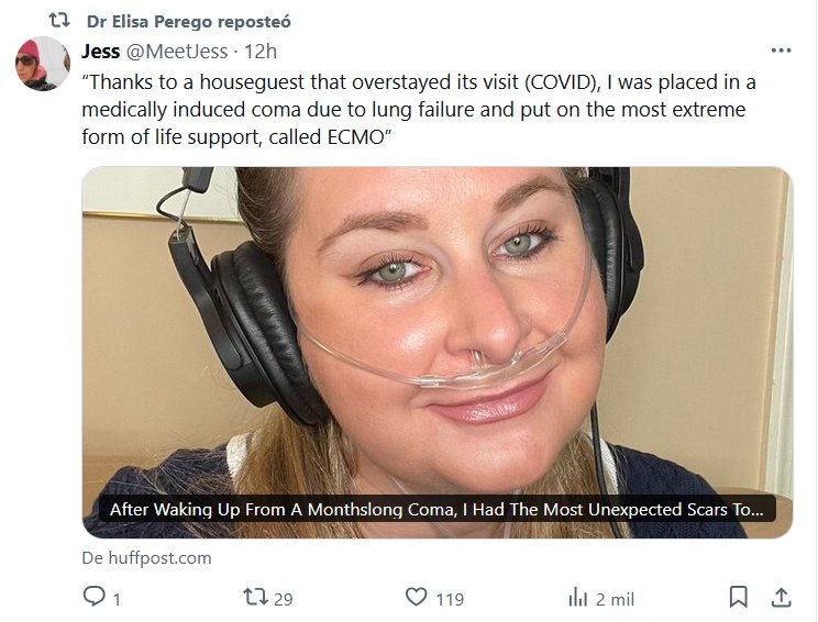 TESTIMONIOS (EN INGLÉS) “Gracias a un huésped que se quedó más tiempo del permitido (COVID), me pusieron en coma inducido médicamente debido a una insuficiencia pulmonar y me pusieron en el tipo más extremo de soporte vital, llamado ECMO”