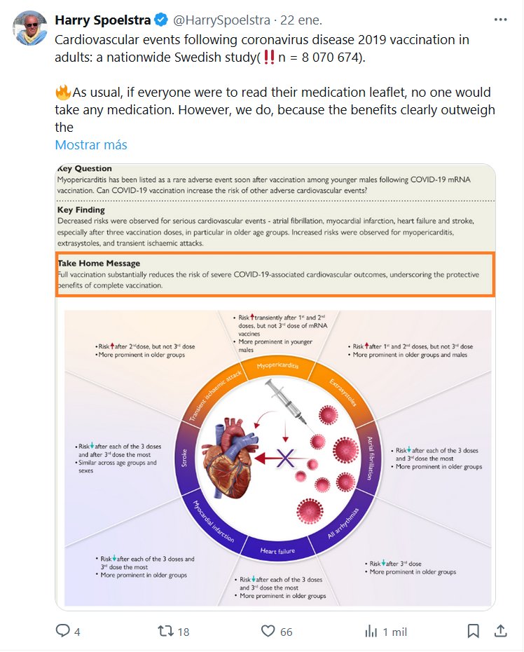 ARNm…ierda! (EN INGLÉS) Harry Spoelstra @HarrySpoelstra Eventos cardiovasculares tras la vacunación contra la enfermedad por coronavirus 2019 en adultos: un estudio sueco a nivel nacional (‼️n = 8 070 674). 🔥Como siempre, si todos leyeran el prospecto de sus medicamentos, nadie tomaría ningún medicamento. Sin embargo, lo hacemos, ¡porque los beneficios superan claramente los riesgos potenciales!