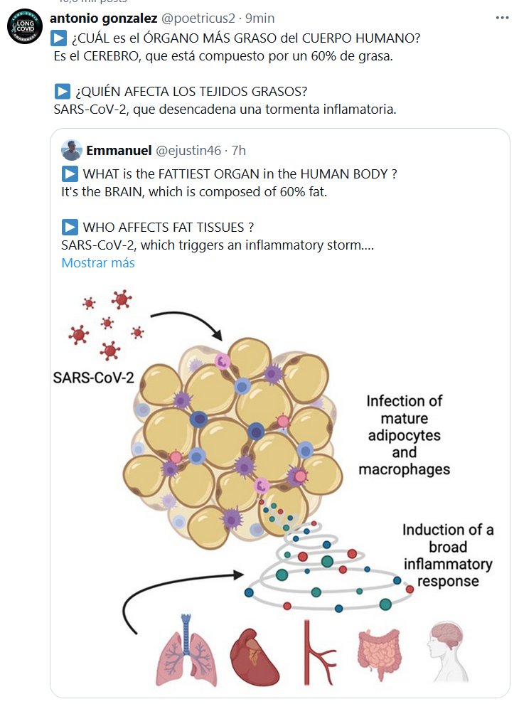 ▶️ ¿CUÁL es el ÓRGANO MÁS GRASO del CUERPO HUMANO? Es el CEREBRO, que está compuesto por un 60% de grasa. ▶️ ¿QUIÉN AFECTA LOS TEJIDOS GRASOS? SARS-CoV-2, que desencadena una tormenta inflamatoria.