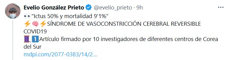 DR. Evelio González Prieto @evelio_prieto · 👀»Ictus 50% y mortalidad 9’1%» ⚡️🧠⚡️SÍNDROME DE VASOCONSTRICCIÓN CEREBRAL REVERSIBLE COVID19 🧵1⃣Artículo firmado por 10 investigadores de diferentes centros de Corea del Sur