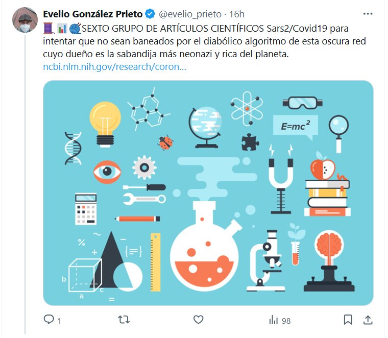 ESCUCHO VOCES QUE SON GRITOS! DR. Evelio González Prieto @evelio_prieto · 🧵📊🧶SEXTO GRUPO DE ARTÍCULOS CIENTÍFICOS Sars2/Covid19 para intentar que no sean baneados por el diabólico algoritmo de esta oscura red cuyo dueño es la sabandija más neonazi y rica del planeta.