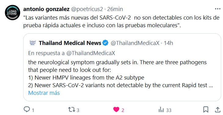 LA RAZÓN POR LA QUE «YA NO HAY» COVID! «Las variantes más nuevas del SARS-CoV-2 no son detectables con los kits de prueba rápida actuales e incluso con las pruebas moleculares» Posted on enero 31, 2025 por coronado https://x.com/ThailandMedicaX/status/1885209129150718147