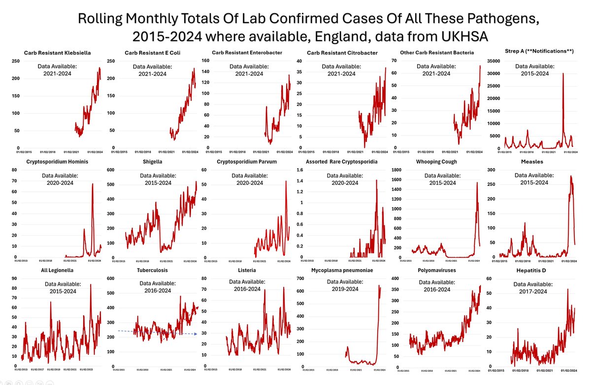 EN INGLÉS Los infectólogos en 2022: «si las infecciones por Covid dañaran los sistemas inmunológicos, veríamos muchos brotes de infecciones oportunistas peligrosas. Entonces, ¿dónde están, eh?» Las infecciones oportunistas peligrosas desde entonces: ¡18 CURVAS PARA ARRIBA!