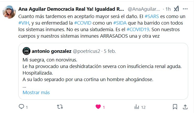 Ana Aguilar Democracia Real Ya! Igualdad Real Ya! @AnaAguilarPAC · Cuanto más tardemos en aceptarlo mayor será el daño. EI #SARS es como un #VIH, y su enfermedad la #COVID como un #SIDA que ha barrido con todos los sistemas inmunes. No es una sixtudemia. Es el #COVID19. Son nuestros cuerpos y nuestros sistemas inmunes ARRASADOS una y otra vez