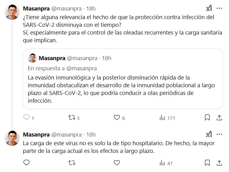 ¿Tiene alguna relevancia el hecho de que la protección contra infección del SARS-CoV-2 disminuya con el tiempo? Sí, especialmente para el control de las oleadas recurrentes y la carga sanitaria que implican. La evasión inmunológica y la posterior disminución rápida de la inmunidad obstaculizan el desarrollo de la inmunidad poblacional a largo plazo al SARS-CoV-2, lo que podría conducir a olas periódicas de infección.