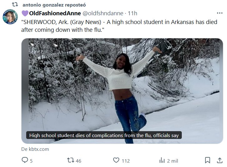 LOWINMUNE POSTCOVID HACE ESTRAGOS (EN INGLÉS) 💜OldFashionedAnne @oldfshndanne «SHERWOOD, Ark. (Gray News) – Una estudiante de secundaria en Arkansas murió después de contraer gripe». Posted on febrero 9, 2025 por coronado