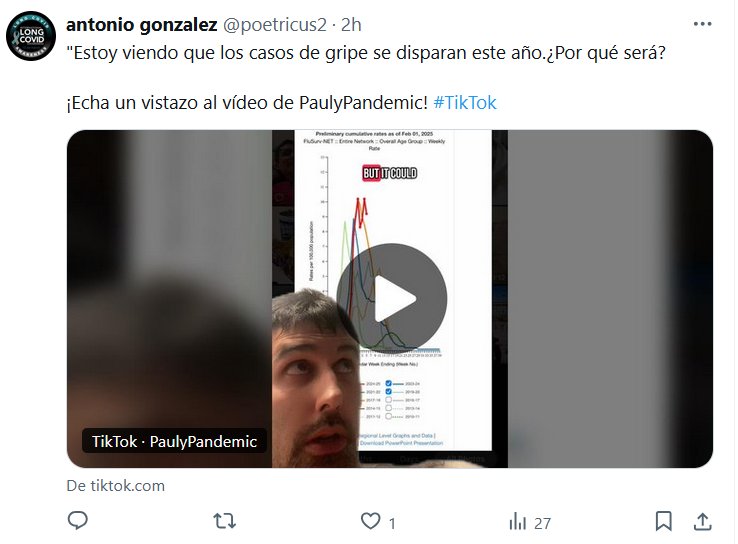 QUÉ ES UNA PREGUNTA COVIDIOTA? «Estoy viendo que los casos de gripe se disparan este año.¿Por qué será? ¡Echa un vistazo al vídeo de PaulyPandemic! #TikTok Posted on febrero 9, 2025 por coronado https://www.tiktok.com/@paulypandemic/video/7469292025255333162?_t=ZN-8tlnmkbmTry&_r=1