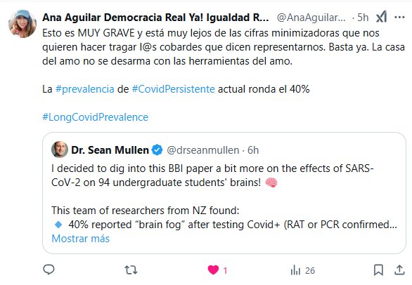 Decidí investigar un poco más sobre este artículo de BBI sobre los efectos del SARS-CoV-2 en los cerebros de 94 estudiantes universitarios. Este equipo de investigadores de Nueva Zelanda descubrió: El 40% informó “niebla mental” después de la prueba de Covid+ (RAT o PCR confirmada) y los síntomas de la infección aguda remitieron El 37% presentó deterioro cognitivo objetivo hasta 17 meses después Los escáneres cerebrales revelaron cambios en el flujo sanguíneo similares a los de adultos 40 años mayores El estudio: Los investigadores utilizaron espectroscopia de infrarrojo cercano (NIRS) para rastrear la actividad cerebral durante pruebas cognitivas. Participantes: 75 que tenían COVID y 19 que no. Midieron el tiempo de reacción, la memoria de trabajo, la atención y la función ejecutiva. Hallazgos clave: Muchos estudiantes COVID+ tuvieron dificultades con tareas cognitivas, especialmente con la inhibición y el cambio de tareas. Su actividad cerebral no se parecía a la de un adulto joven típico: se parecía a patrones observados en adultos mucho mayores. El hemisferio derecho mostró los mayores cambios, lo que coincide con investigaciones anteriores que vinculan el COVID con el daño neurológico. Limitaciones: - Tamaño de muestra pequeño (n=19 para el grupo de control). - Infecciones autoinformadas (algunos estudiantes “no-COVID” pueden haber tenido casos no detectados). Se desconoce si estos cambios persisten o mejoran. Se han realizado estudios más prolongados y se han detectado descensos en el rendimiento durante hasta dos años (el estudio más prolongado que he visto hasta la fecha). La gran conclusión: El COVID no es solo un resfriado. Altera el funcionamiento del cerebro, incluso en personas jóvenes y sanas. Estos efectos persisten durante más de un año (¡DURANTE AL MENOS DIECISIETE MESES EN ESTA MUESTRA!). No se trata de alarmismo, sino de datos. Todos los adultos deberían tomarse en serio el COVID-19, especialmente aquellos que corren el riesgo de contraer infecciones repetidas año tras año: su cerebro depende de ello. #LongCovid #BrainFog #COVID19 #NeuroScience