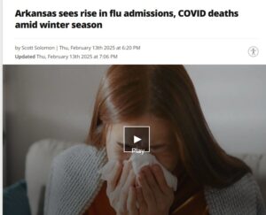 «COVID deaths» (EN INGLÉS) Arkansas registra un aumento en las admisiones por gripe y las muertes por COVID en plena temporada de invierno Posted on febrero 14, 2025 por coronado https://katv.com/news/local/arkansas-department-of-health-respiratory-diseases-report-katv-news-covid-winter-season-admission-health-safety-community-inform-wellness EN EL TÍTULO "MUERTES COVID" Y EN LA FOTO UN PAÑUELITO!