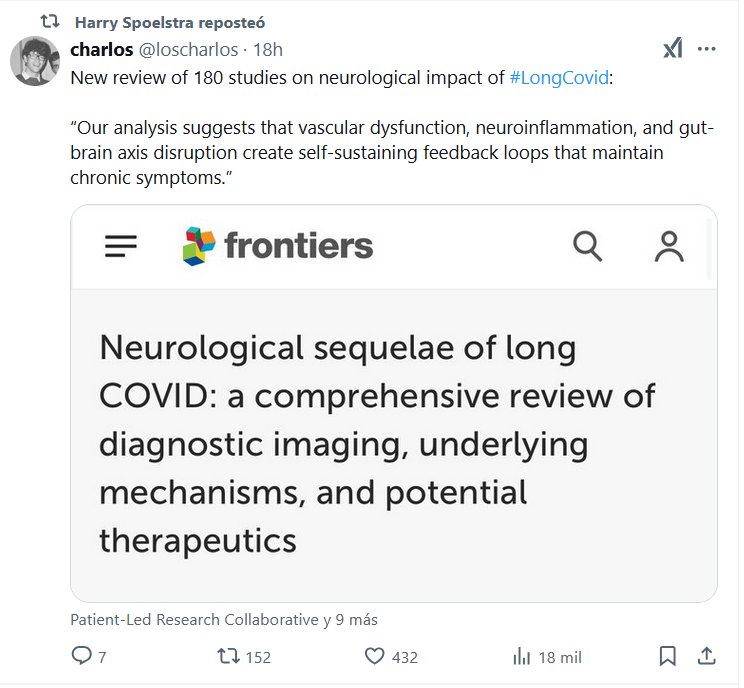 EN INGLÉS Nueva revisión de 180 estudios sobre el impacto neurológico del #CovidProlongado: “Nuestro análisis sugiere que la disfunción vascular, la neuroinflamación y la alteración del eje intestino-cerebro crean bucles de retroalimentación autosostenibles que mantienen los síntomas crónicos”