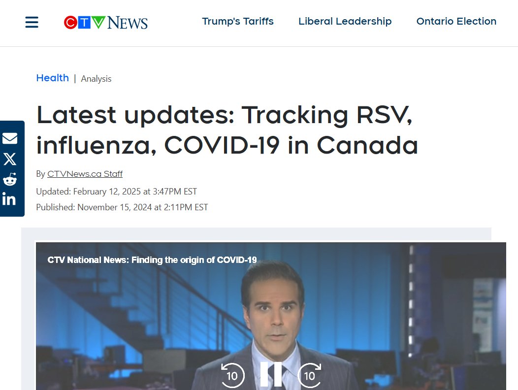 EN INGLÉS Últimas actualizaciones: Seguimiento del virus respiratorio sincitial, la gripe y la COVID-19 en Canadá Posted on febrero 14, 2025 por coronado https://www.ctvnews.ca/health/article/latest-updates-tracking-rsv-influenza-covid-19-in-canada/