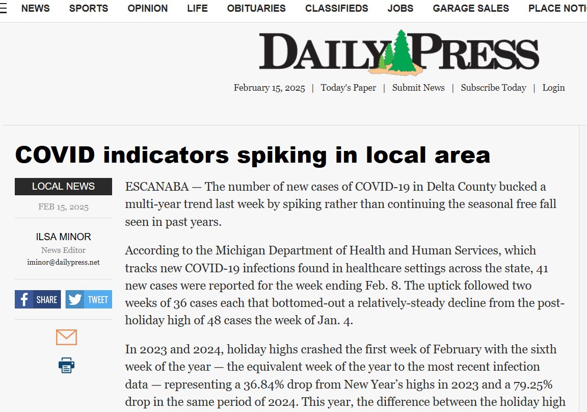 EN INGLÉS Los indicadores de COVID-19 aumentan en el área local ESCANABA — La cantidad de casos nuevos de COVID-19 en el condado de Delta rompió una tendencia de varios años la semana pasada al aumentar en lugar de continuar la caída libre estacional observada en años anteriores