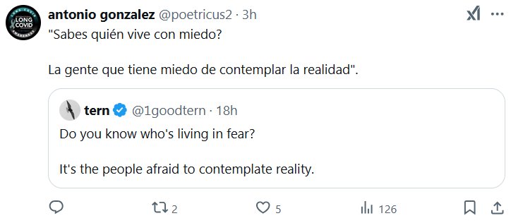 LOS QUE USAMOS MASCARILLA VIVIMOS CON CUIDADO, LA NEGACIÓN PSICOLÓGICA ES PRODUCTO DEL MIEDO Antonio González @poetricus2 · «Sabes quién vive con miedo? La gente que tiene miedo de contemplar la realidad».