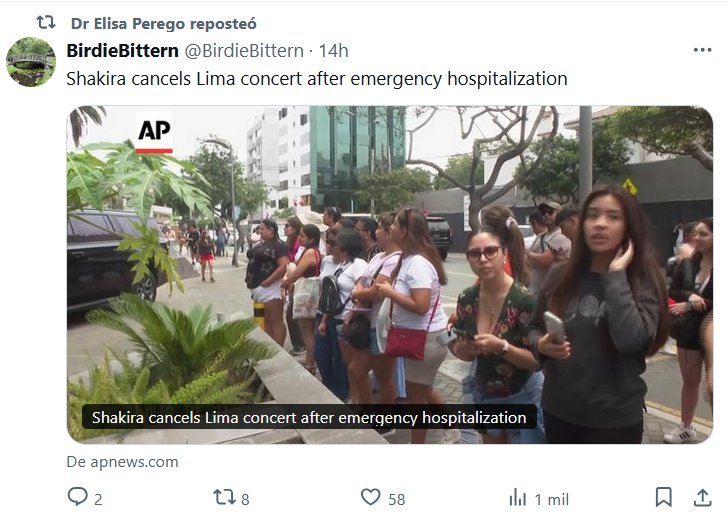 POR QUÉ AHORA TODO EL MUNDO SE ENFERMA? EN INGLÉS La Dra. Elisa Perego reposteó BirdieBittern @BirdieBittern Shakira cancela concierto en Lima tras hospitalización de emergencia Posted on febrero 17, 2025 por coronado