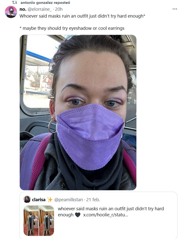 DE UNA GUERRERA DE LA SALUD (EN INGLÉS) Quien haya dicho que las mascarillas arruinan un atuendo simplemente no se esforzó lo suficiente* * Tal vez debería probar con sombras de ojos o aretes geniales