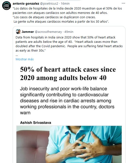NOS VOLVIMOS CIEGOS O LOCOS? «Los datos de hospitales de la India desde 2020 muestran que el 50% de los pacientes con ataques cardíacos son adultos menores de 40 años. “Los casos de ataques cardíacos se duplicaron con creces. La gente sufre ataques cardíacos mortales a partir de los 30 años”.