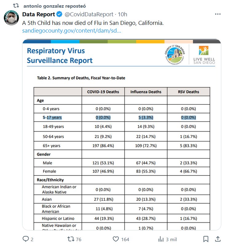 LA RABIA IMPERIO ASESINO DE NIÑOS 🎶 EL MAL PASTOR Y SUS GRIPES COVIDIANAS (EN INGLÉS) Informe de datos @CovidDataReport Un quinto niño murió de gripe en San Diego, California. Posted on marzo 1, 2025 por coronado