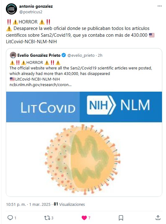 OMERTÁ COVID: LA MAFIA EN ACCIÓN DESAPARECIENDO PRUEBAS Antonio González @poetricus2 ‼️⚠️HORROR ⚠️‼️ ⚠️ Desaparece la web oficial donde se publicaban todos los artículos científicos sobre Sars2/Covid19, que ya contaba con más de 430.000 🇺🇸LitCovid-NCBI-NLM-NIH