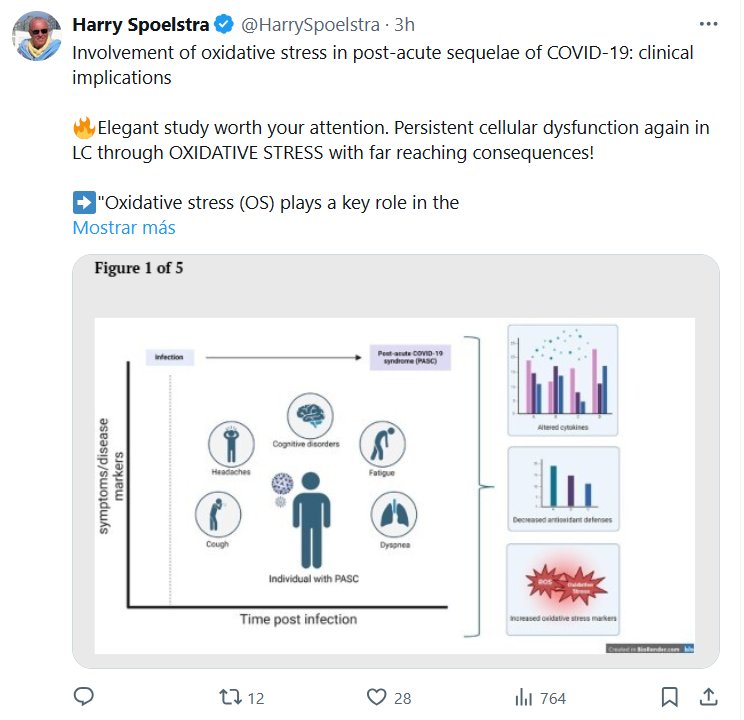 EN INGLÉS Harry Spoelstra @HarrySpoelstra Implicación del estrés oxidativo en las secuelas post-agudas de COVID-19: implicaciones clínicas 🔥Estudio elegante que merece su atención. ¡Disfunción celular persistente nuevamente en LC a través del ESTRÉS OXIDATIVO con consecuencias de largo alcance!