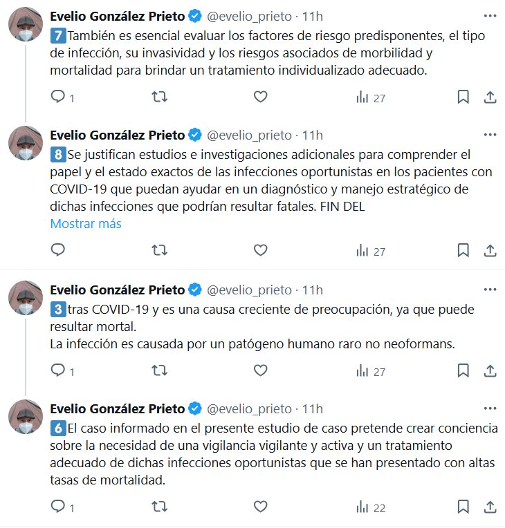 COVID NO TERMINA EN COVID, SIGUE EN POSTCOVID Se justifican estudios e investigaciones adicionales para comprender el papel y el estado exactos de las infecciones oportunistas en los pacientes con COVID-19 que puedan ayudar en un diagnóstico y manejo estratégico de dichas infecciones que podrían resultar fatales