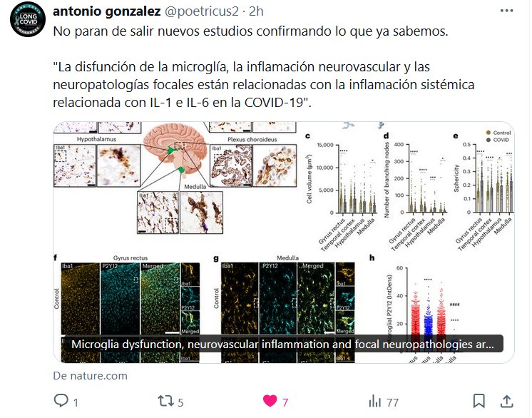 No paran de salir nuevos estudios confirmando lo que ya sabemos. «La disfunción de la microglía, la inflamación neurovascular y las neuropatologías focales están relacionadas con la inflamación sistémica relacionada con IL-1 e IL-6 en la COVID-19»