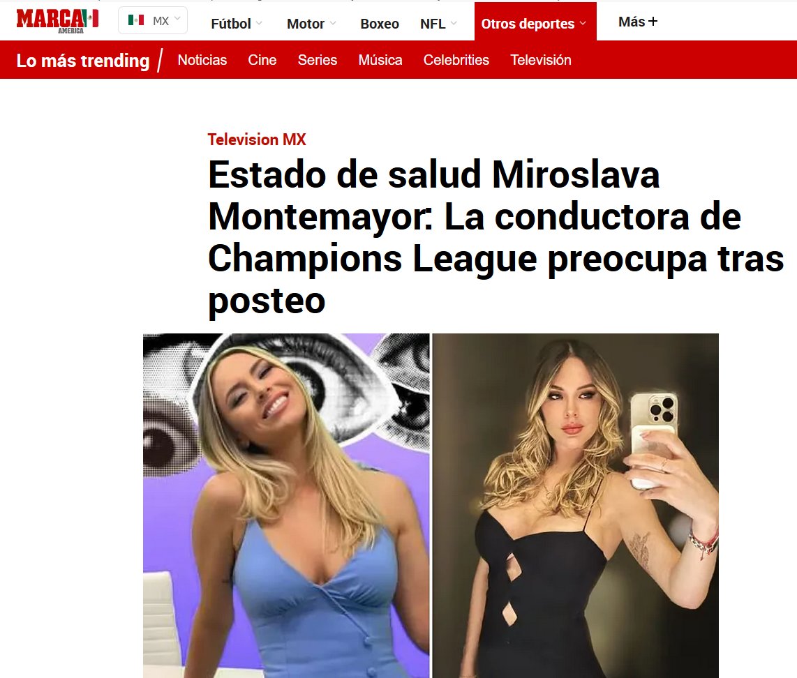 YA NO HAY PEOR HAY La conductora de Champions League preocupa tras posteo Cuál es el estado de salud de Miroslava Montemayor? A través de su cuenta de Instagram, Miroslava Montemayor anunció que contrajo Covid-19 en la última semana, por lo que estará fuera de las transmisiones por algunos días, según la misma conductora