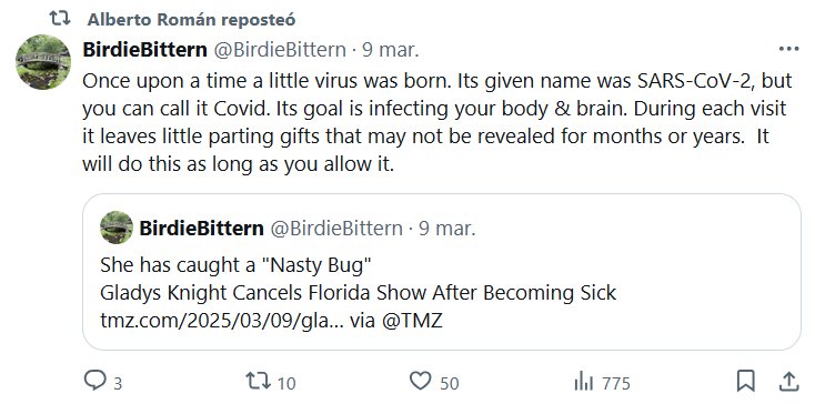 ESCUCHO VOCES (EN INGLÉS) Érase una vez un pequeño virus que nació. Su nombre de pila era SARS-CoV-2, pero tú puedes llamarlo Covid. Su objetivo es infectar tu cuerpo y tu cerebro. En cada visita deja pequeños regalos de despedida que pueden no revelarse durante meses o años. Lo hará siempre que tú se lo permitas.
