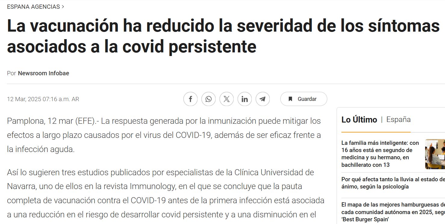 La vacunación ha reducido la severidad de los síntomas asociados a la covid persistente Posted on marzo 12, 2025 por coronado https://www.infobae.com/espana/agencias/2025/03/12/la-vacunacion-ha-reducido-la-severidad-de-los-sintomas-asociados-a-la-covid-persistente/