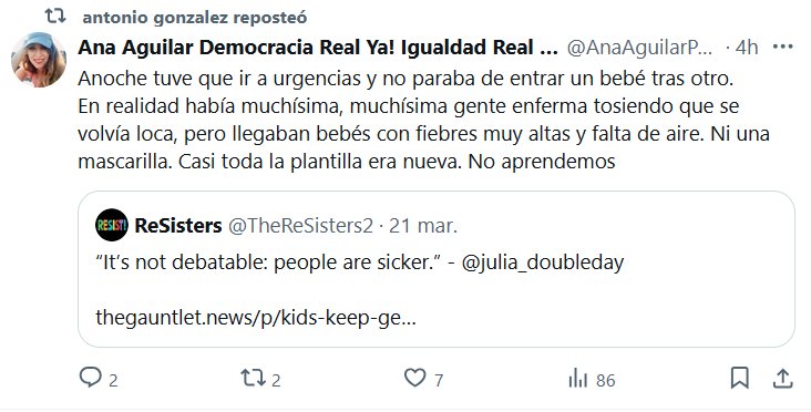 ESCUCHO VOCES Anoche tuve que ir a urgencias y no paraba de entrar un bebé tras otro. En realidad había muchísima, muchísima gente enferma tosiendo que se volvía loca, pero llegaban bebés con fiebres muy altas y falta de aire. Ni una mascarilla. Casi toda la plantilla era nueva. No aprendemos