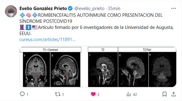 DR. Evelio González Prieto @evelio_prieto · 💠🧠💠ROMBENCEFALITIS AUTOINMUNE COMO PRESENTACION DEL SÍNDROME POSTCOVID19 🧵1⃣🇺🇸Artículo firmado por 6 investigadores de la Universidad de Augusta, EEUU.