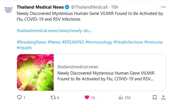 El misterioso gen humano VILMIR, recientemente descubierto, se activa en infecciones por gripe, COVID-19 y VRS. Posted on marzo 27, 2025 por coronado https://www.thailandmedical.news/news/newly-discovered-mysterious-human-gene-vilmir-found-to-be-activated-by-flu-covid-19-and-rsv-infections