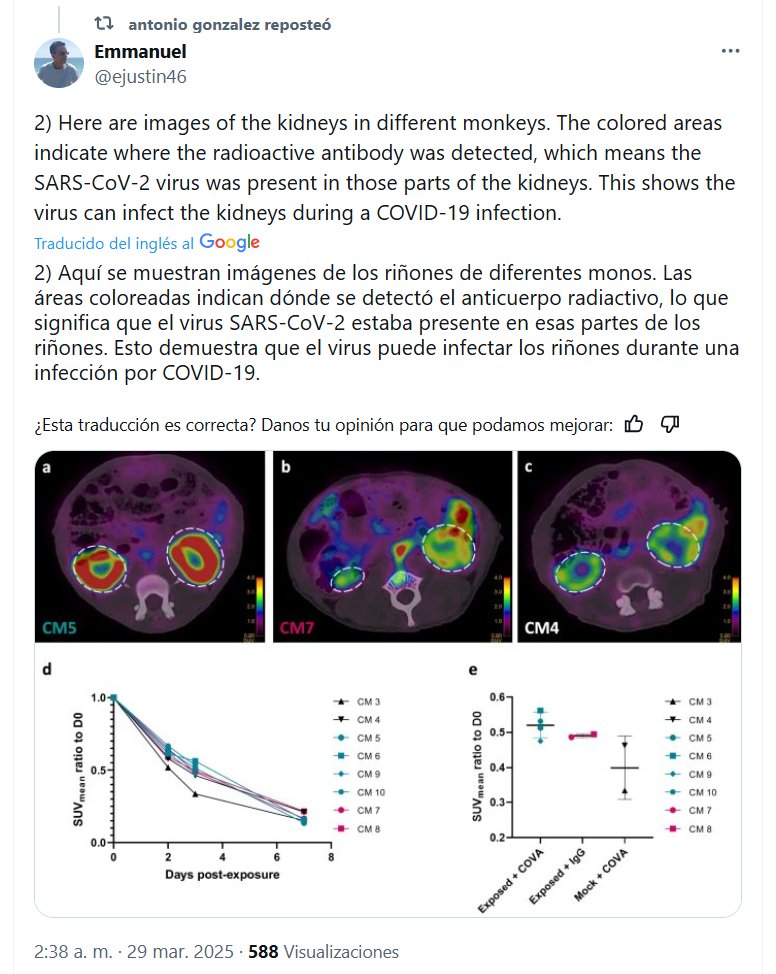 COVID Y RIÑONES: «se detectó el anticuerpo radiactivo, lo que significa que el virus SARS-CoV-2 estaba presente en esas partes de los riñones. Esto demuestra que el virus puede infectar los riñones durante una infección por COVID-19»