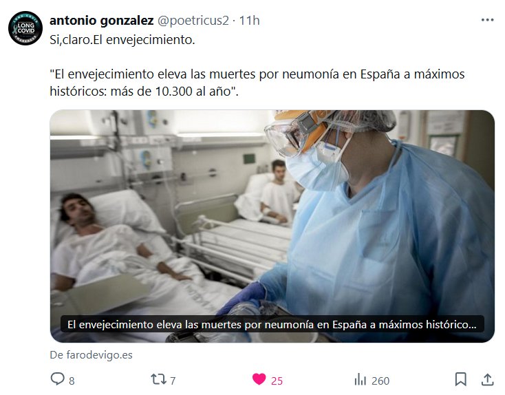 LOS HIJOS DEL PADRE DE LA MENTIRA YA SIN VERGÜENZA ALGUNA Si,claro.El envejecimiento. «El envejecimiento eleva las muertes por neumonía en España a máximos históricos: más de 10.300 al año». Posted on abril 14, 2025 por coronado