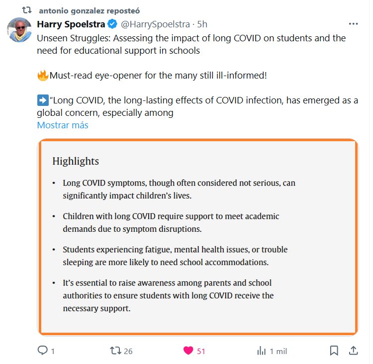 Dr. Harry Spoelstra @HarrySpoelstra Luchas invisibles: Evaluación del impacto de la COVID prolongada en los estudiantes y la necesidad de apoyo educativo en las escuelas 🔥¡Una lectura reveladora imprescindible para quienes aún están mal informados!