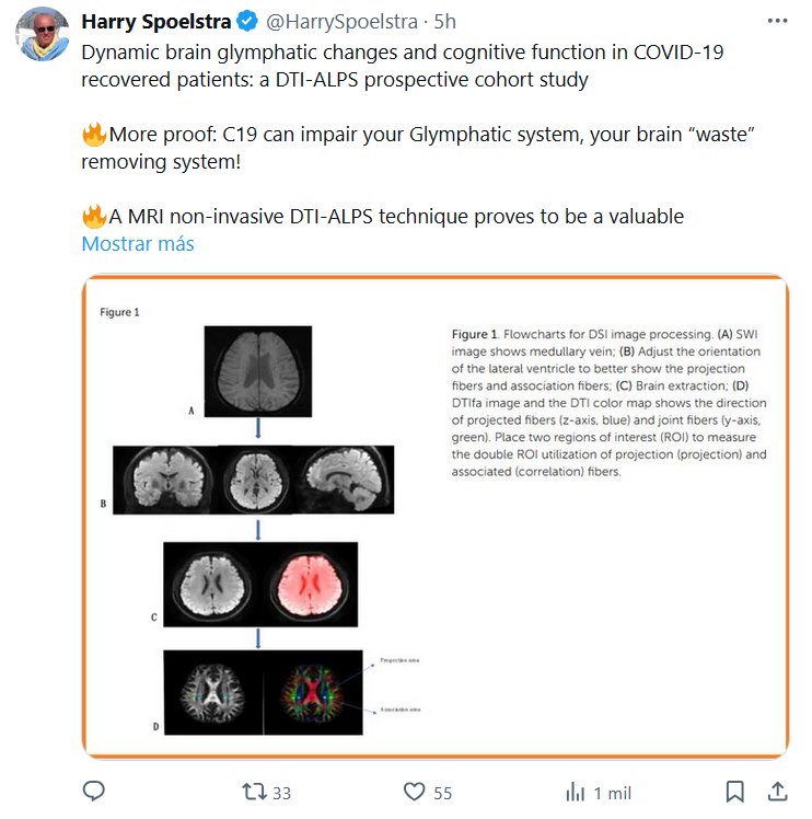 DR. Harry Spoelstra @HarrySpoelstra Cambios dinámicos glinfáticos cerebrales y función cognitiva en pacientes recuperados de COVID-19: un estudio de cohorte prospectivo DTI-ALPS 🔥Más pruebas: ¡El COVID-19 puede afectar el sistema glinfático, el sistema de eliminación de desechos del cerebro!