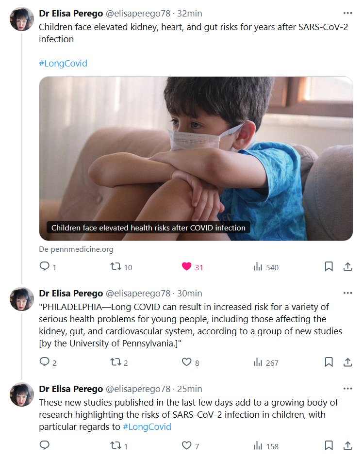 Dra. Elisa Perego @elisaperego78 · Los niños se enfrentan a un mayor riesgo de sufrir enfermedades renales, cardíacas e intestinales durante años tras la infección por SARS-CoV-2 #CovidProlongado