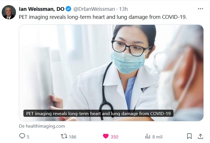 Dr. Ian Weissman, DO @DrIanWeissman · Las imágenes PET revelan daño cardíaco y pulmonar a largo plazo causado por la COVID-19 Posted on mayo 7, 2025 por coronado https://healthimaging.com/topics/medical-imaging/nuclear-medicine/pet-ct/pet-imaging-reveals-long-term-heart-and-lung-damage-covid-19