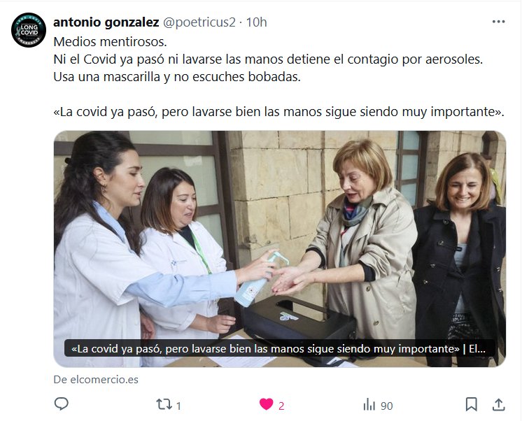 ESCUCHO VOCES: Medios mentirosos. Ni el Covid ya pasó ni lavarse las manos detiene el contagio por aerosoles. Usa una mascarilla y no escuches bobadas. Posted on mayo 7, 2025 por coronado EL PODER SÍ QUE SE LAVA LAS MANOS!