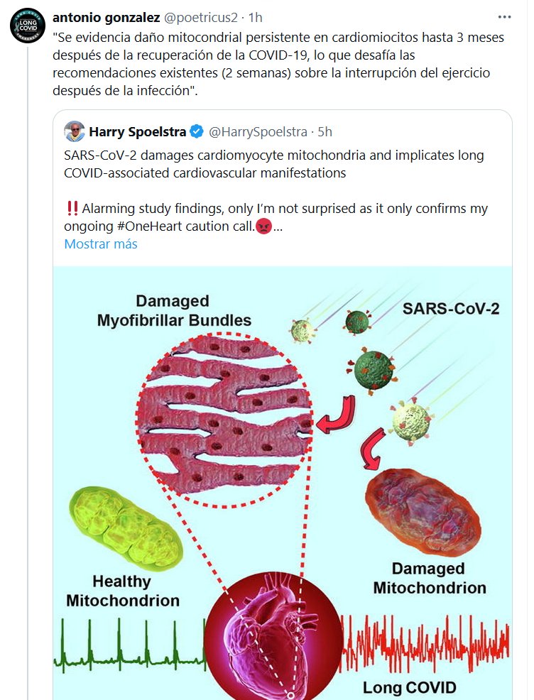 «Se evidencia daño mitocondrial persistente en cardiomiocitos hasta 3 meses después de la recuperación de la COVID-19, lo que desafía las recomendaciones existentes (2 semanas) sobre la interrupción del ejercicio después de la infección»