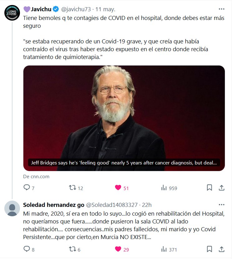 ESCUCHO VOCES QUE SON GRITOS QUE CLAMAN AL CIELO …donde pusieron la sala COVID al lado rehabilitación…. consecuencias..mis padres fallecidos, mi marido y yo Covid Persistente…que por cierto, en Murcia «NO EXISTE»… [IRONIZANDO POR LA MINIMIZACIÓN]