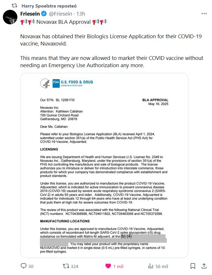 Aprobación de la BLA de Novavax Novavax ha obtenido la Solicitud de Licencia de Biológicos para su vacuna contra la COVID-19, Nuvaxovid. Esto significa que ya puede comercializar su vacuna contra la COVID-19 sin necesidad de una Autorización de Uso de Emergencia.