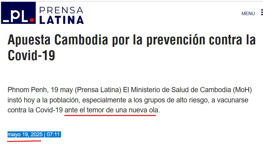 El Ministerio de Salud de Cambodia (MoH) instó hoy a la población, especialmente a los grupos de alto riesgo, a vacunarse contra la Covid-19 ante el temor de una nueva ola. Posted on mayo 19, 2025 por coronado https://www.prensa-latina.cu/2025/05/19/apuesta-cambodia-por-la-prevencion-contra-la-covid-19/