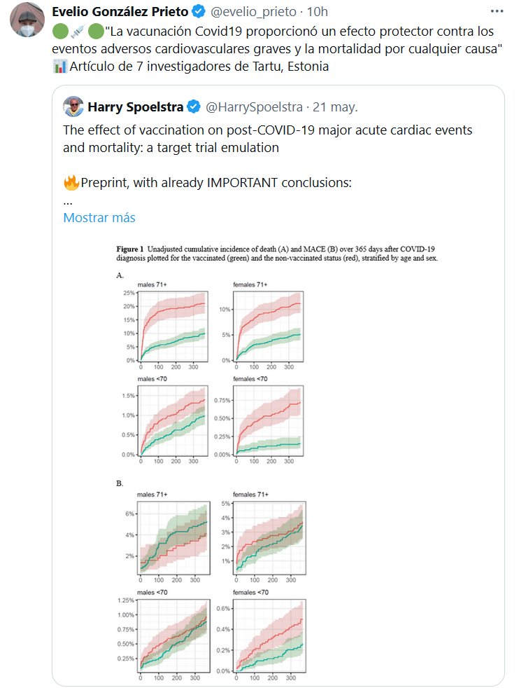 🟢💉🟢»La vacunación Covid19 proporcionó un efecto protector contra los eventos adversos cardiovasculares graves y la mortalidad por cualquier causa» 📊Artículo de 7 investigadores de Tartu, Estonia