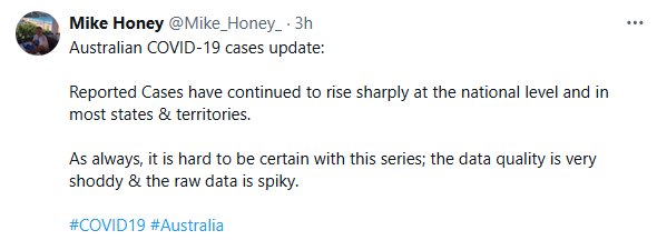 6º AÑO DE «FIN DE PANDEMIA» Actualización de casos de COVID-19 en Australia: Los casos reportados han seguido aumentando drásticamente a nivel nacional y en la mayoría de los estados y territorios. Como siempre, es difícil tener certeza con esta serie; la calidad de los datos es muy deficiente y los datos brutos son irregulares.